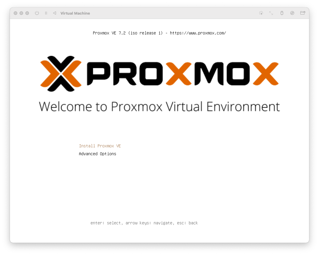 Der in Vorbereitung erstellte USB-Stick kann nun in den zu installierenden PC eingesteckt werden. Im Bootmenü des PC sollte dieser jetzt für den Bootvorgang ausgewählt werden. Jetzt sollten wir von Proxmox mit einer Auswahl begrüßt werden.